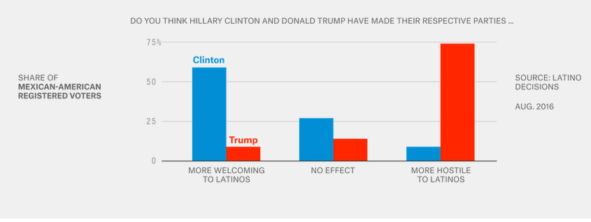 Gabriel Sanchez, a professor of political science at the University of New Mexico and a principal at the opinion research firm Latino Decisions, said Latinos are more enthusiastic about voting this year than in 2012, having been mobilized by Trump’s comments targeting Mexicans. He added that the Republican Party will have a hard time winning over Mexican-Americans in subsequent elections unless it supports comprehensive immigration reform.