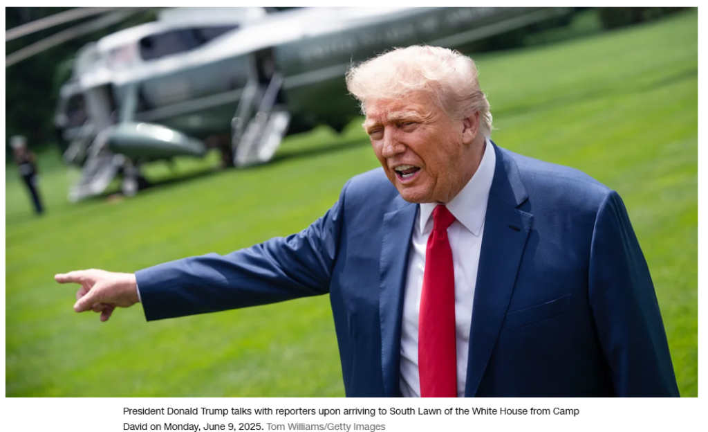 The president’s border czar Tom Homan, meanwhile, told CNN’s Kaitlan Collins that claims by Democratic officials that protests intensified because Trump sent National Guard troops were “ridiculous.” Joining “The Source” from Los Angeles, Homan said, “It all depends on the activities of these protesters— I mean, they make the decisions.”